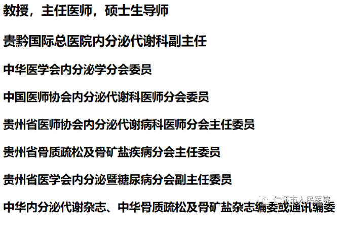 曾任贵州省钙磷代谢暨骨质疏松学会常务委员