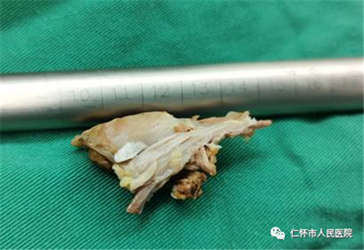 近日,我院眼耳鼻咽喉科在手术全麻下成功完成第40例硬性食管镜下食管内异物取出术。患者男,30岁,吃下午饭时说话不慎误食鸭骨,导致食管梗阻,颈胸部疼痛,不能吞咽。夜间急诊于我院眼耳鼻咽喉科,行颈胸部CT提示:食管中段异物。予完善术前检查,急诊在全身麻醉下行硬性食管镜下食管异物取出术。术中在距离门齿25cm处取出直径长约5cm的鸭骨,手术顺利,术后1天复查颈胸部CT未见明显异常予出院。