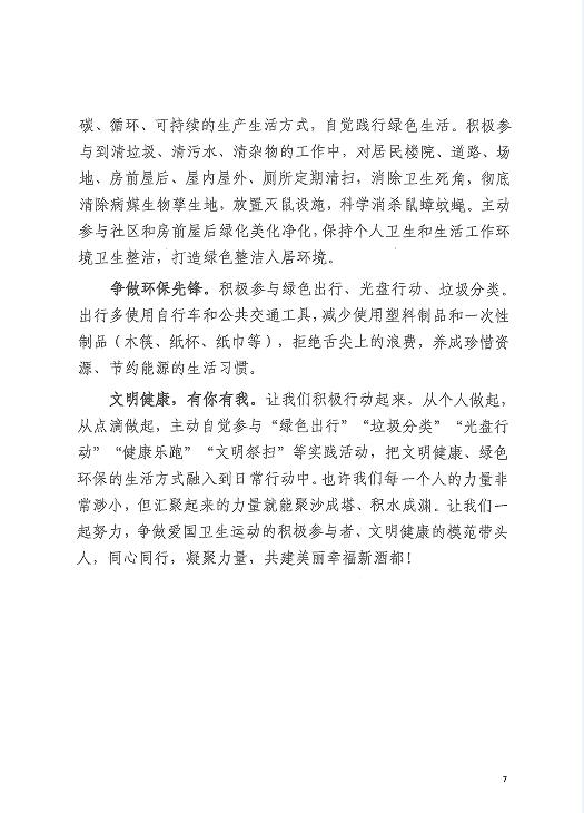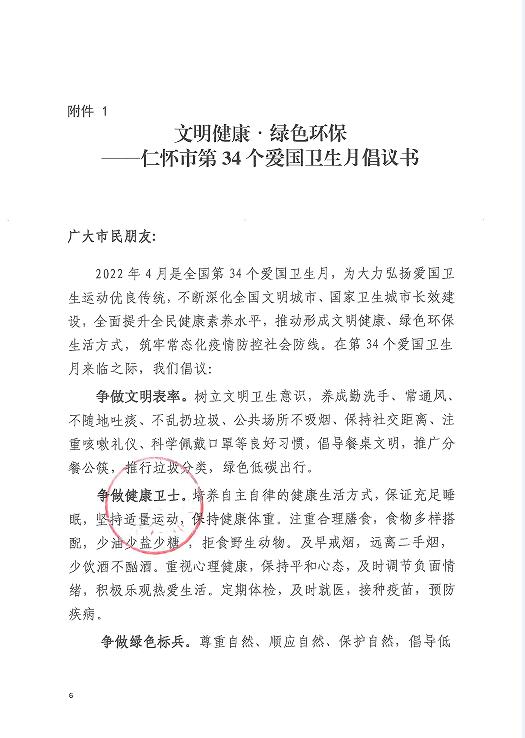文明健康,绿色环保,仁怀市第34个爱国卫生月倡议书