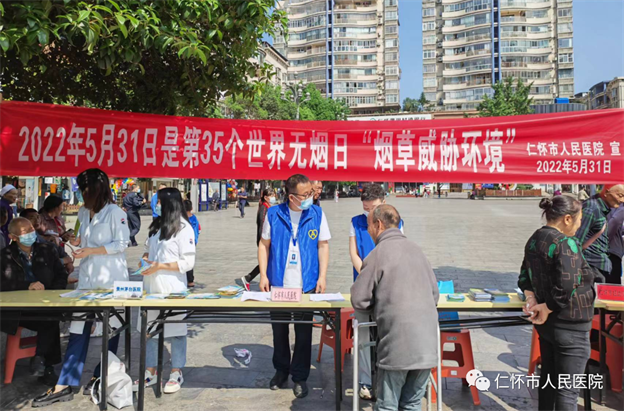 为大力宣传烟草危害,传播控烟知识。2022年5月31日,仁怀市人民医院按照市疾控中心工作安排,在解放广场开展第35个世界无烟日宣传活动。