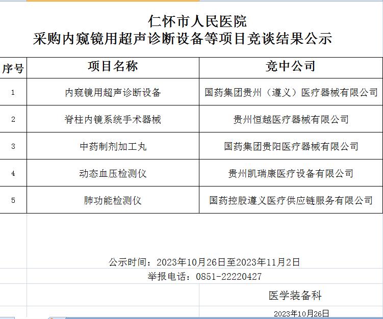 仁怀市人民医院 采购内窥镜用超声诊断设备等项目竞谈结果公示