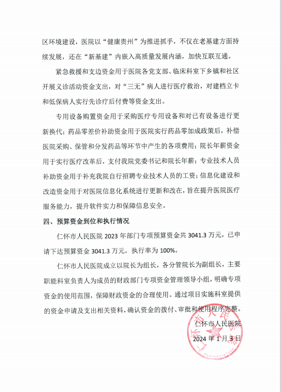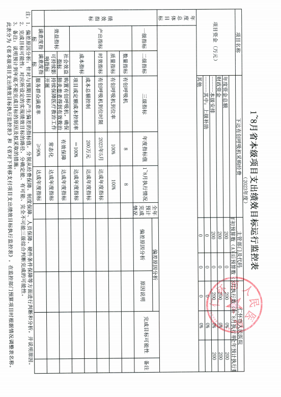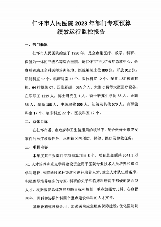 仁怀市人民医院2023年部门专项预算绩效运行监控报告