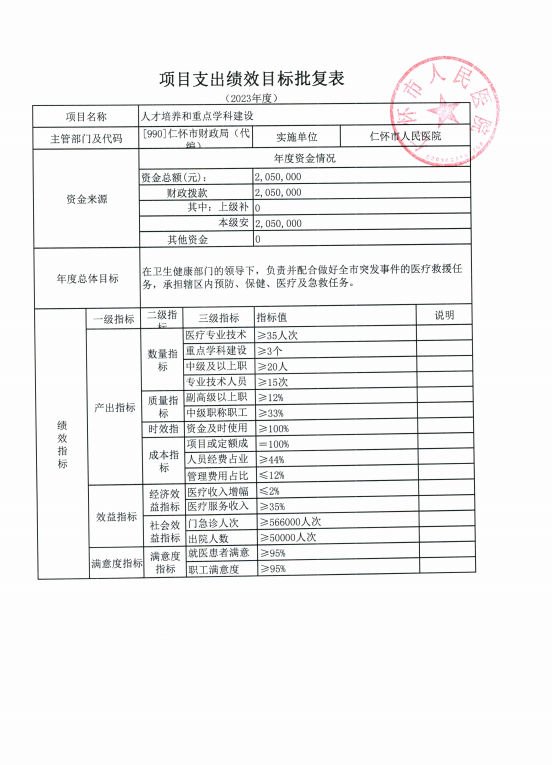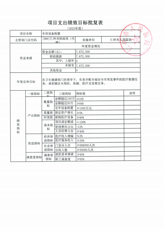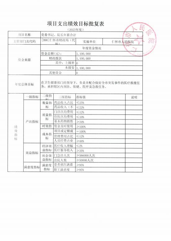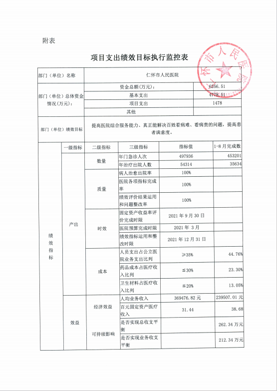 仁怀市人民医院2022年度项目支出绩效评价报告