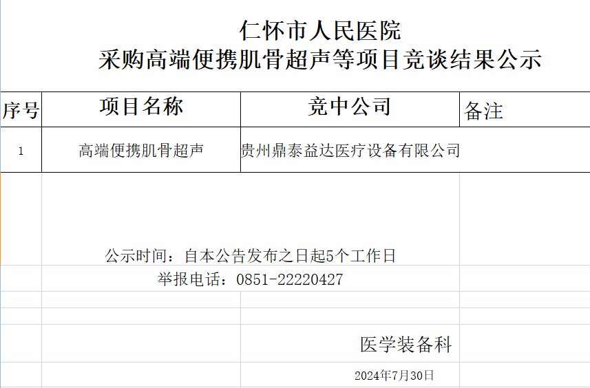 仁怀市人民医院 采购高端便携肌骨超声等项目竞谈结果公示