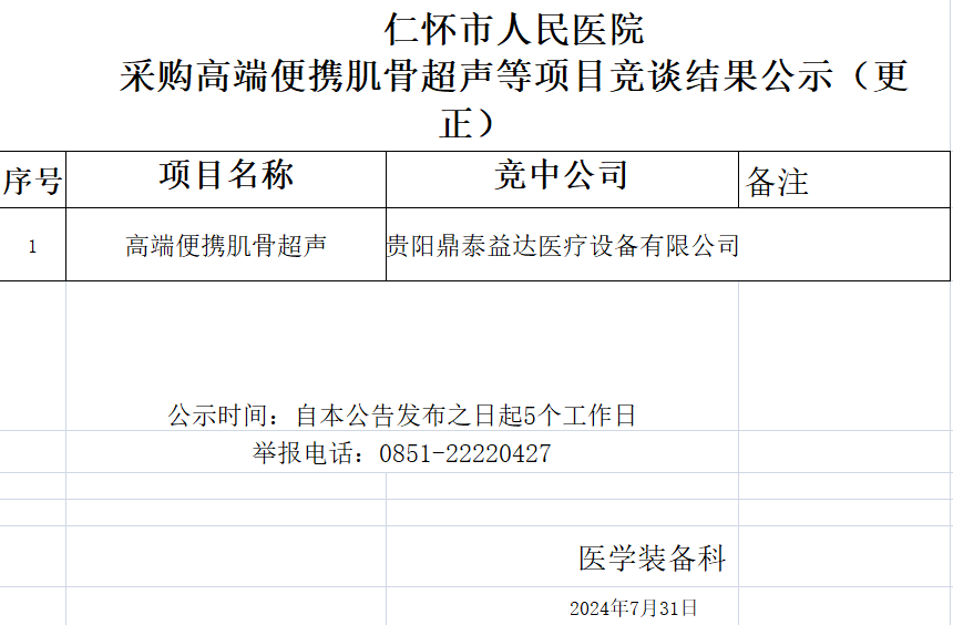 仁怀市人民医院采购高端便携肌骨超声等项目竞谈结果公示(更正)
