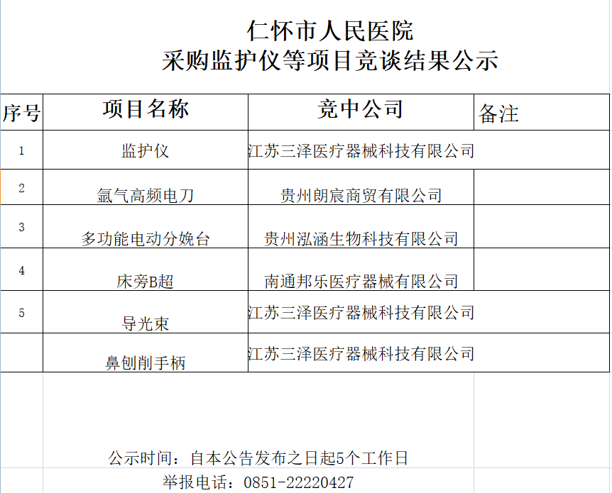 仁怀市人民医院 采购监护仪等项目竞谈结果公示