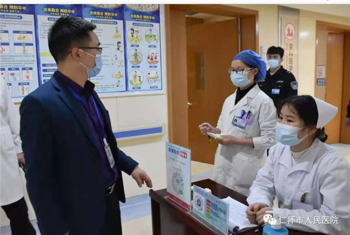 陈静华带领检查组重点对医疗安全疫情防控等方面进行检查。针对节日期间科室排班和外出情况、重点病人情况、急诊急救管理、病历书写、医疗废物、物资设备储备情况、信息系统运行状态等进行查看,特别针对门诊、急诊、发热门诊等重点部门、重点区域的疫情防控工作进行了检查。