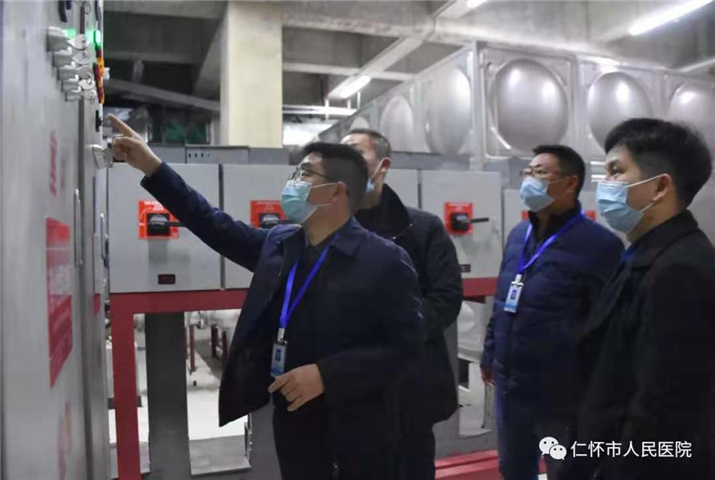 潘世林带领检查组重点督导检查消防安全、用电安全、特种设备等运行情况,对全院医疗设备运行、安全用电、用水、消防控制室、液氧站、污水处理站等运行情况进行细检查;特别是对发电机房、配电房、电梯房、消防泵房、消防控制室、监控室等重要保障部门进行了重点排查,确保无安全隐患。