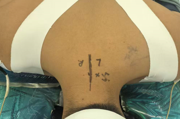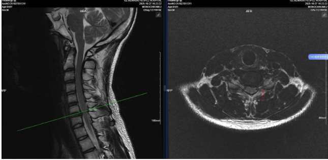 患者彭同学为18岁高三学生,因左侧肩颈部疼痛伴左上肢放射痛、麻木6个月前来就诊,被诊断为颈椎间盘突出症。他是目前我院接诊的年纪最小的颈椎病患者。由于长期受左上肢疼痛困扰,其学习与生活受到严重影响。在尝试保守治疗效果不佳后,考虑推迟手术可能影响学业及患者的康复,经与家属积极沟通后,在上级专家的指导下,决定选择微创手术方案。