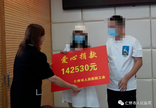 善款有限,爱心无价,这次捐款共为患病职工陈国梅送上爱心款143530元,一笔笔爱心捐款,承载着我院干部职工对陈国梅一家的关爱,展现着仁医大家庭中的温情与大爱,也让陈国梅一家感受到了来自医院大家庭的温暖。收到爱心捐助款的同时,她激动地说:“感谢院领导的关怀,感谢院工会的大力帮助,更感谢医院兄弟姐妹给予的捐助,谢谢你们!”我们大家衷心祝福她早日康复,幸福安康!