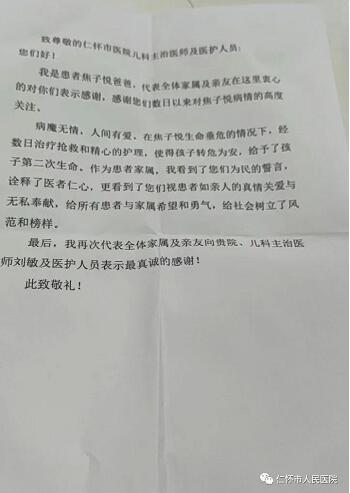 儿科主任范艳说,正是家长们质朴的感谢、孩子们纯真的笑脸,成就了仁怀市人民医院儿科人的执着和坚守!我们更将不忘医务人员初心,为推动医院发展砥砺前行!一面锦旗,一个故事,一份感动!对于医护人员来说,每一面锦旗都代表了患者家属对我们专业技术和优质服务的肯定,激励着我们更好地为每一位患者热诚服务,让每一位患者感受到家一样的温暖。