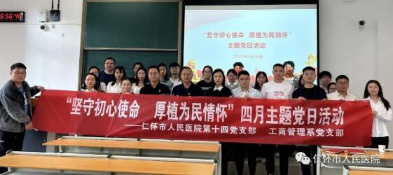 为加强党建业务深度融合和支部之间交流,4月18日下午,仁怀市人民医院第十四党支部走进茅台学院工商管理系开展“坚守初心使命,厚植为民情怀”主题党日活动。茅台学院工商管理系主任童俊,茅台学院工商管理系党支部书记吴鹏西,仁怀市人民医院第十四党支部书记余锋、党支部副书记周华乔及双方支部的党员代表参加活动。活动由吴鹏西主持。