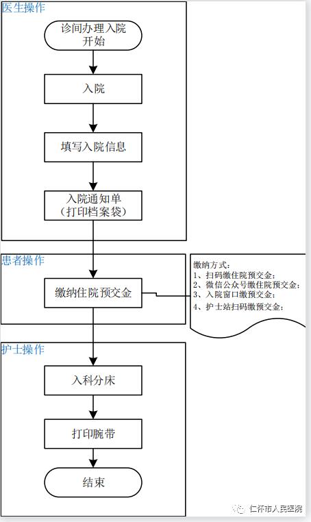 仁怀市人民医院一直秉承全心全意为患者服务,提升诊疗服务质量,不断的优化就诊流程。5月8日,我院诊间入院在原流程上再次进行升级调整,患者在门诊就诊时,门诊医生根据患者实际情况,达到入院指征的,医生直接在系统中点击“入院”,输入患者门诊号,完善患者详细信息确认后,在患者档案袋上打印“入院通知单(档案袋)”,患者就可以根据通知单指引直接到科室,扫描住院缴费二维码预缴纳住院金后,相关工作人员进行分床即可。这样一套信息化的提升,不仅节省了就诊时间,还实现了患者“少跑路、信息多跑路”的服务理念。