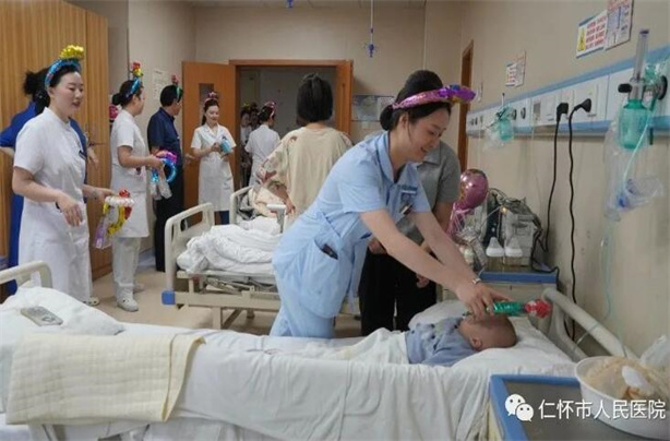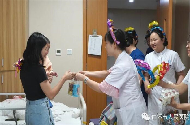 6月1日上午9时,院工会一行前往儿科病区,亲切慰问了住院患者小朋友,将慰问品亲自送到每个孩子手中,祝愿他们早日康复,健康成长!