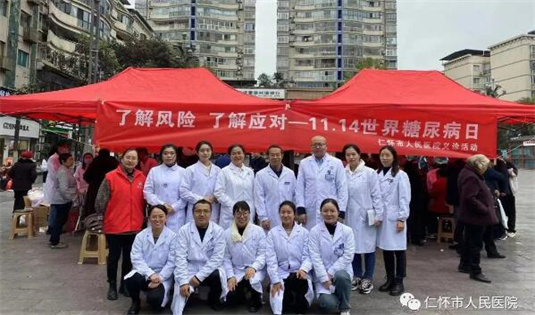 每年的11月14日是“世界糖尿病日”,今年世界糖尿病日的主题是“了解风险、了解应对”,重点在于让大家了解患上糖尿病的风险及应对措施。为提高广大群众对糖尿病的防治意识,降低糖尿病及其并发症的发生风险和危害,在“世界糖尿病日”当日,我院内分泌科联合遵义医科大学附属医院内分泌代谢性疾病科,组织我院脑科中心、心血管内科、营养科、药剂科等多个学科知名专家在解放广场开展义诊活动,为广大市民免费提供专业的科普咨询及全面的诊疗服务。