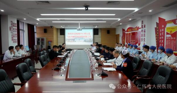 3月12日上午,中国胸痛中心再认证飞检专家组组长铜仁市人民医院教授王学胜、贵州医科大学第二附属医院教授夏碧桦、贵州省中医药大学第二附属医院教授熊宗华、胸痛中心再认证上海办公室秘书张君一行4人对我院胸痛中心进行飞行检查。市卫生健康局副局长陈远忠、市人民医院党委书记李杰峰及医院行政领导班子成员、胸痛中心建设相关科室人员参加见面交流会。