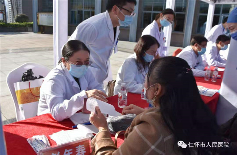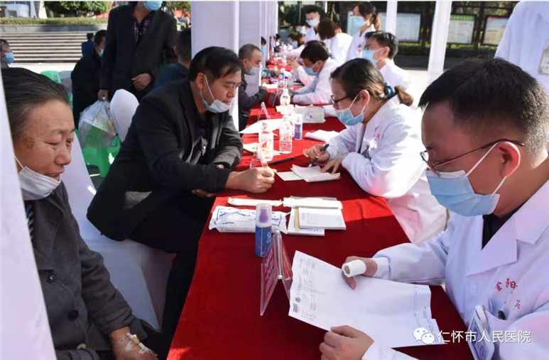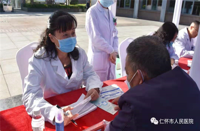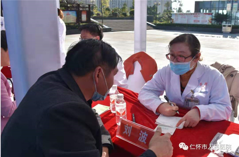 培训会后,来自省内多家医疗机构的10余名内分泌科专家在我院门诊部前广场举行了贵州省2020年联合国糖尿病日暨蓝光行动大型义诊活动。为糖尿病患者检查身体,指导用药,开具处方,免费血糖、糖化血红蛋白、血压、体重、腰围、腹围等并发放糖尿病防治健康手册等,为仁怀及周边百姓的身体健康和社会和谐带来了新的福音。