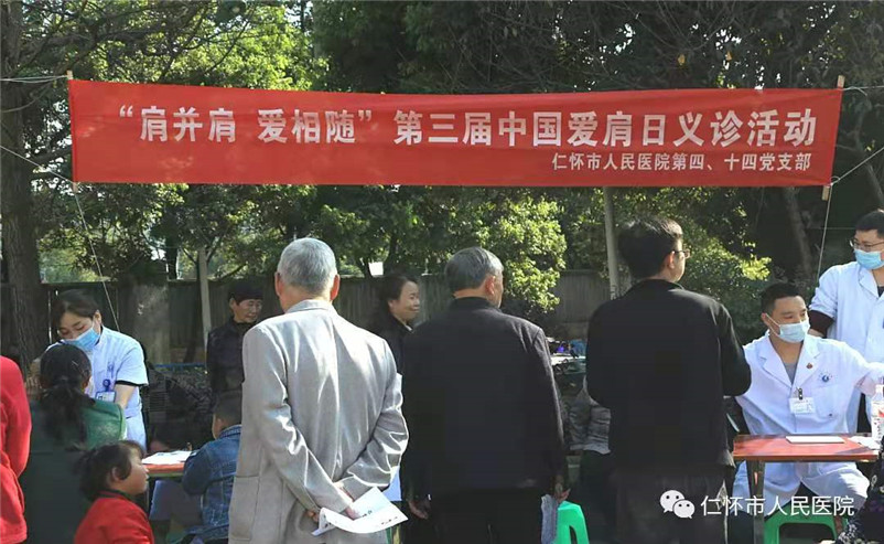 11月15日,我院第四、十四党支部全体党员在体育馆广场开展“肩并肩,爱相随”第三届“全国爱肩月”义诊活动。